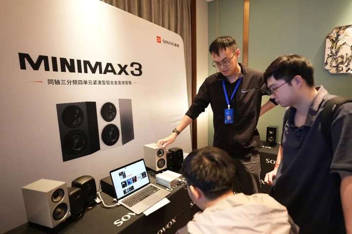 索威本次展出的核心产品是两款监听音箱:面向个人音频创作者和桌面用户的MiniMax3 Monitor,以及面向专业工作室的M1205同轴三分频远场监听音箱。