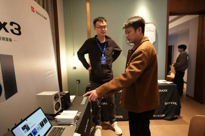 展会期间,索威展位从早至晚人流不断。当最后一天的闭馆时间截止时,仍有几位发烧友在与工程师进行最后的交流。一位专程从外地赶来的录音师在体验后表示:“没想到国产同轴技术已经能做到这种程度,精准而不失音乐性,这对我们干活来说太重要了,监听市场早该让你们这些有技术的音响企业来卷一卷了。”